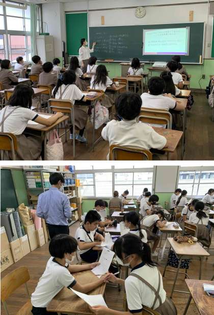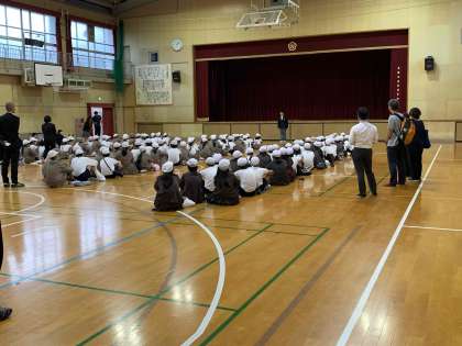 部活動はあいにくの雨天で、運動部も教室での体験となりましたが、子どもたちは中学生の先輩にていねいに教えてもらい、楽しい時間を過ごせたようでした。