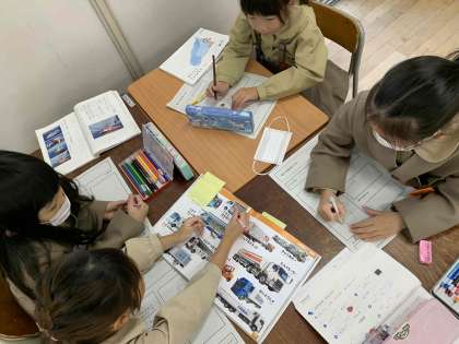 学習のまとめとして、船以外の乗り物について調べ、自分でまとめることに取り組んでいます。