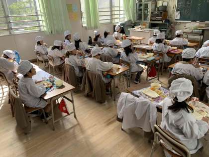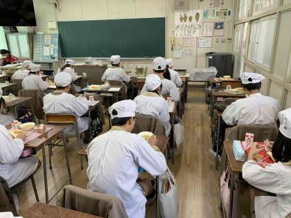 柿がデザートに出たのですが、6年生の教室では、柿が余っていたので何個も食べている子がいました。