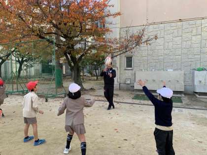選手の皆さんは、休憩時間に子どもたちとドッジボールをしたり、ラグビーボールでキャッチボールをしたりと、たくさんの子どもたちと交流をしてくださっていました。