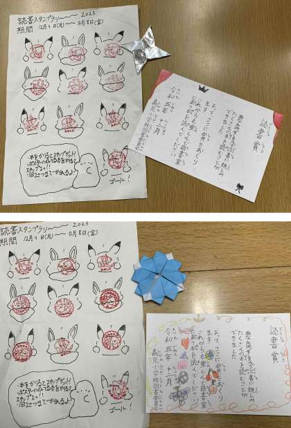 達成者には図書委員手作りの賞状と折り紙が贈られました。