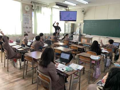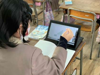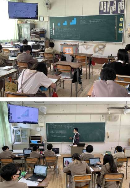 パソコンを使って考えるクラス。タイルの図を使って考えるクラス。