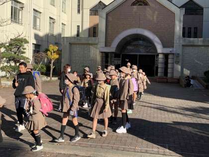 緊急時には、このように集団登校をします。