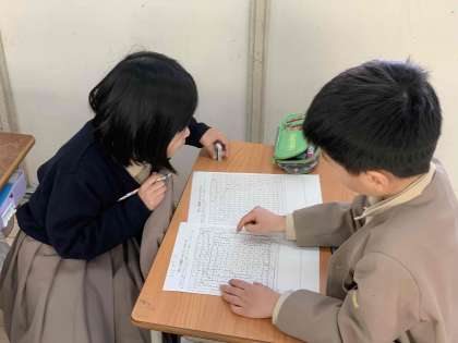 見つけた言葉を近くの人と見せ合いっこをして、自分が気づかなかった言葉もたくさん見つけました。