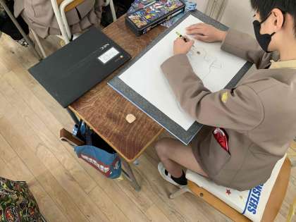 今日は下書きした絵をカーボン紙を使って、板に写す作業もしました。