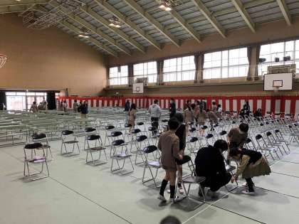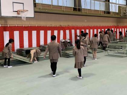 卒業式に向け、5年生が講堂の準備をしました。