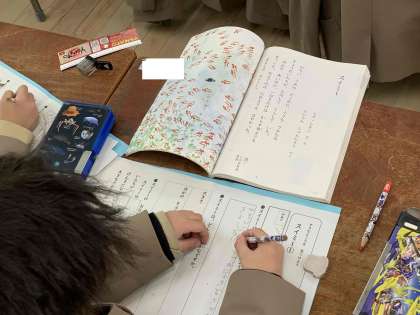 国語の学習で、「どんなお話だったかな」とまとめをしました。