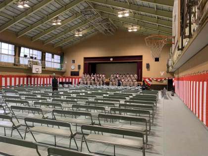 昨日、5年生が心を込めて準備した会場で、6年生が早速練習をしていました。