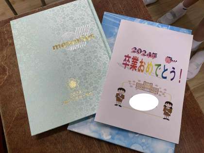 子どもたちは友達や先生方に思い出のメッセージをたくさん書いてもらい、とてもうれしそうでした。