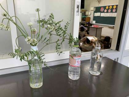 教室の前には、つくしやしろつめ草など春がいっぱいです。