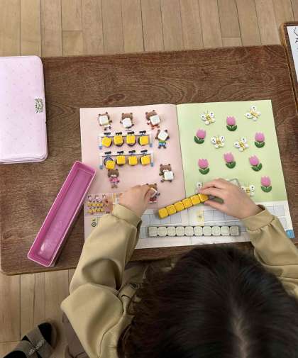 線を引いたり、ブロックを使ったりして、同じ数かどうかを確かめました。