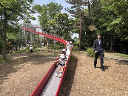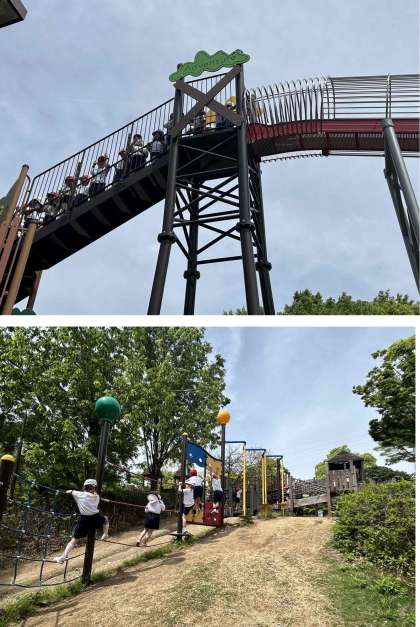 広い公園の中で、様々な遊具を使って活動をしています。