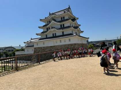 お城をバックに記念撮影です。