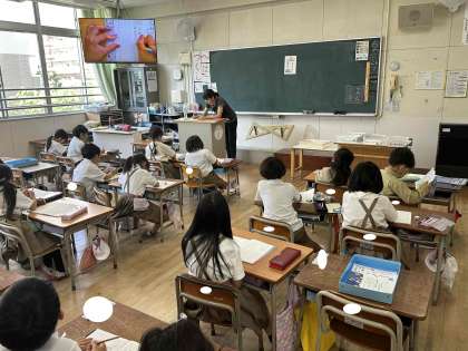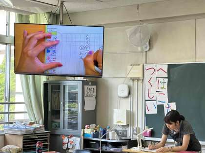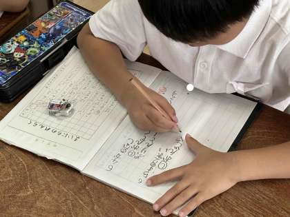 手紙や宿題の書き方を先生の例を見て、丁寧に書いていました。