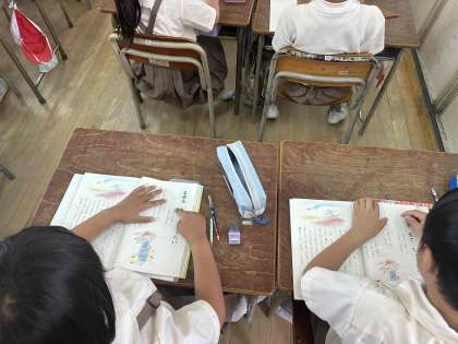 先生の後について、本文を指でなぞりながら、読みました。