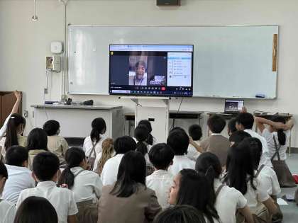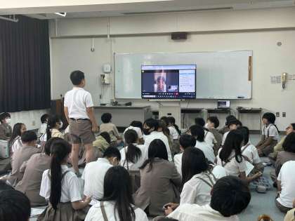 大阪府太子町長さんをゲストティチャーにお招きし、オンラインで学習を行いました。