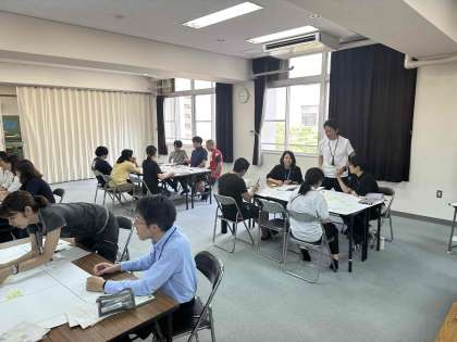 今回は、伝えたいことを明確に書いたり話し合ったりする力の向上について、協議しました。教員で成果や課題を共有し、アドバイザーの内藤由美子先生からご指導をいただきました。