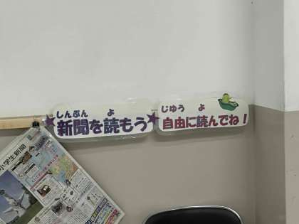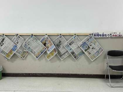 職員室前に小学生新聞を掲示しています。