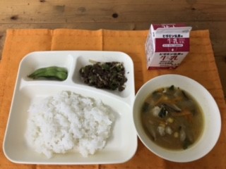 今日の給食は、はしで食べたのですが、少し食べにくそうにしていました。(栄養教諭)