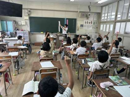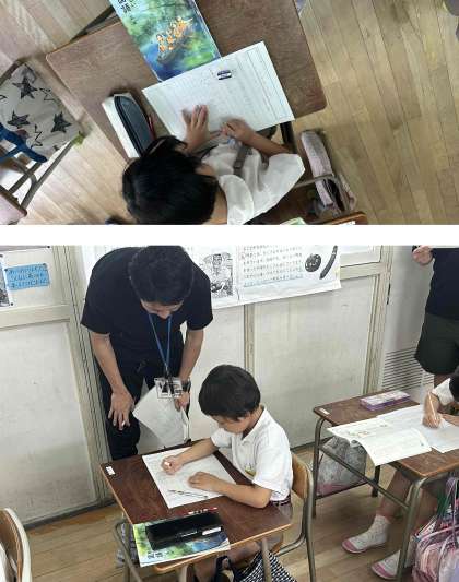 多くの子どもが「はじめましょう」の合図で一斉に鉛筆を動かし、文章を書き始めました。