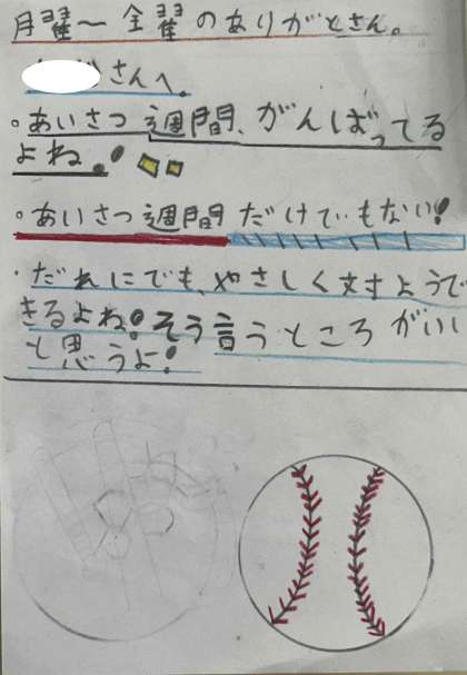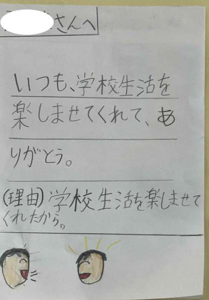 4年1組の教室に「今週のありがとさん」という掲示がありました。
