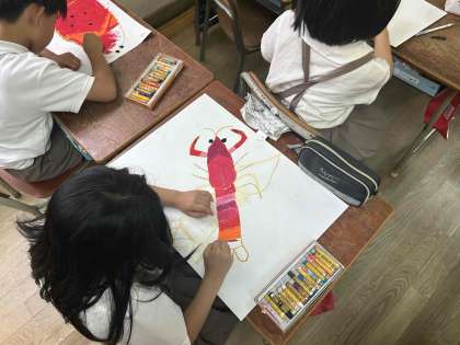 画用紙いっぱいに書かれたザリガニは、とても迫力がありました。