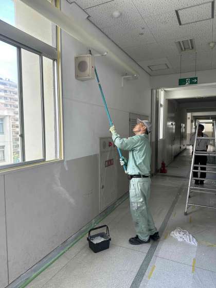 また、廊下の壁に管理作業員さんがペンキを塗ってくださっていました。