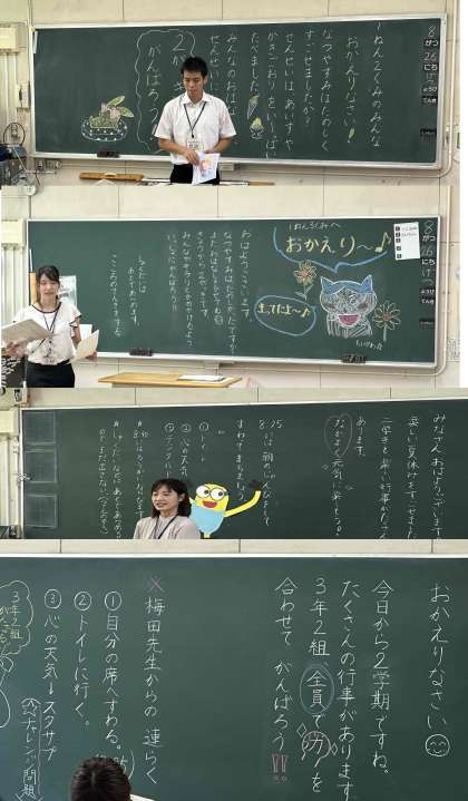黒板は、担任からの素敵なメッセージで飾られ、子どもたちはやる気を起こしたのではないでしょうか。