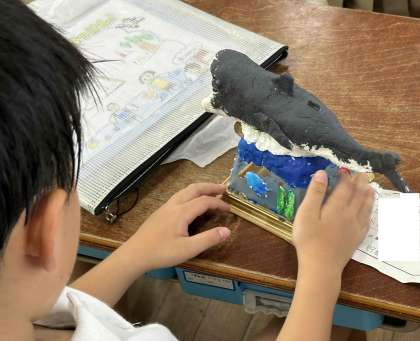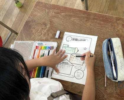 また、2学期の目標を書いたり、夏休みの作品を披露しあったりしました。