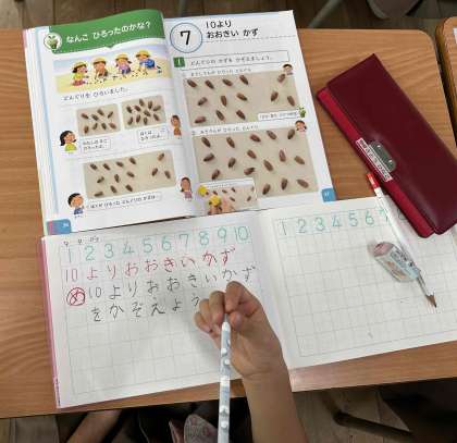 13個のどんぐりを子どもたちはいろいろな方法で数えました。