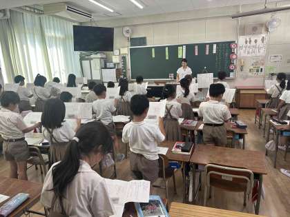 たくさんの先生方が見ている中、子どもたちは頑張って学習に取り組みました。
