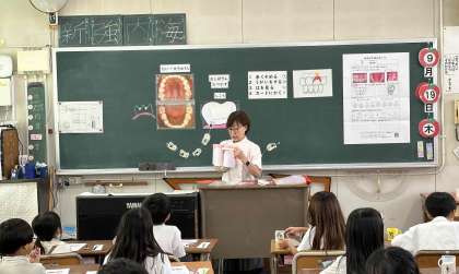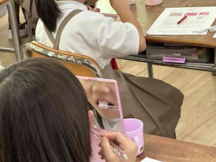 2年生が「はみがき名人」を目指して、はみがきの学習をしました。