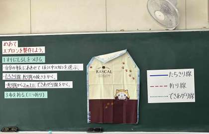 先日の参観では1組のエプロンづくりの様子をお知らせしました。
