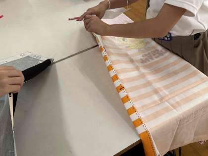 自分の身長に合わせて長さを決め、裁つところを確認します。