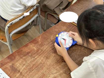 子どもたちは、指示の出た時間を、各自が持つ時計で表していました。