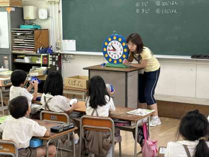 針を動かして、時間を合わせられた子どもは、嬉しそうに先生に時計を見せていました。、