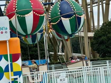 雨がやんでいる間に、いろいろな乗り物を楽しんでいます。