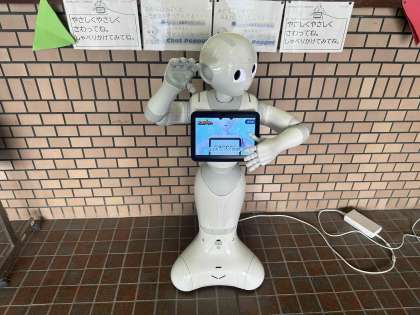 おしゃべり、ダンス、クイズなど様々な機能があり、子どもたちは休み時間になるとペッパーのところに遊びに来ます。