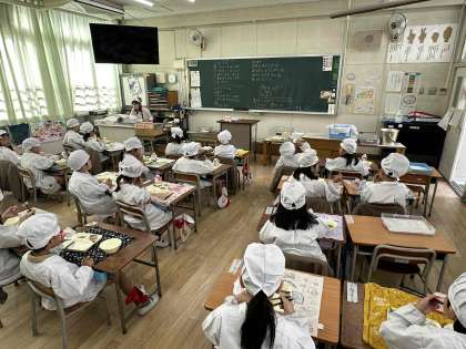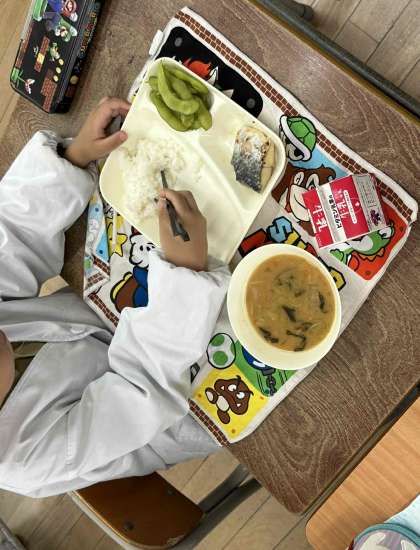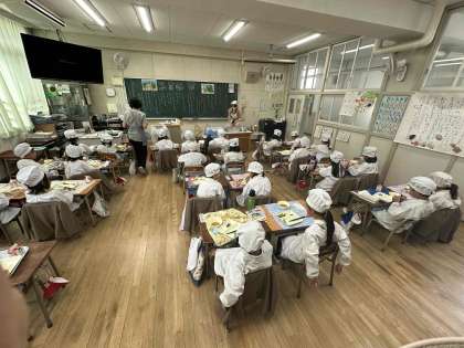 1年生も学校の給食になれ、当番や配膳などスムーズにできるようになりました。