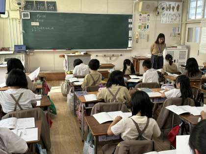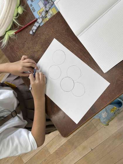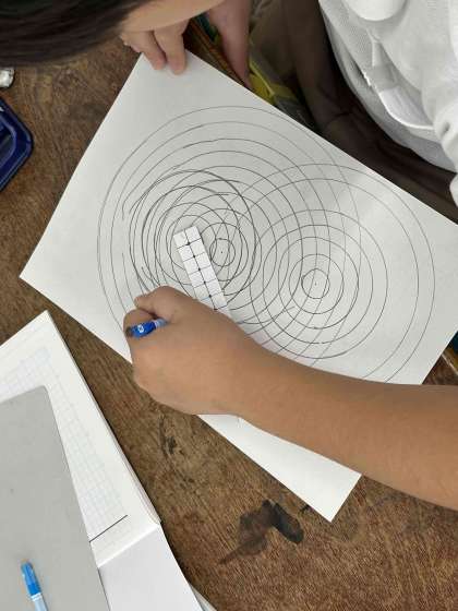 今日はものさしのようにメモリのついて紙を使って、円を描きました。