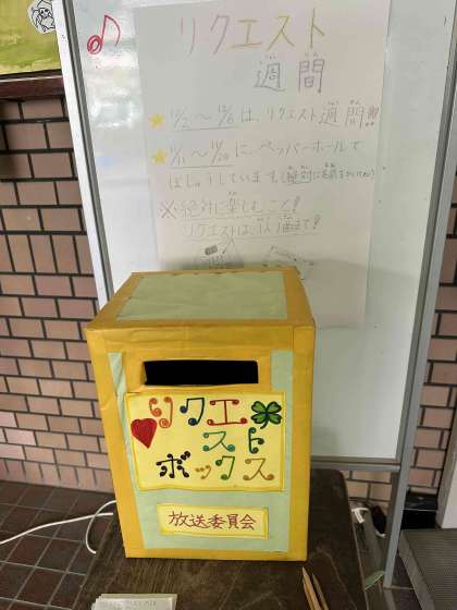 放送委員会がリクエストボックスを設置し、みんなにアンケート調査をしています。