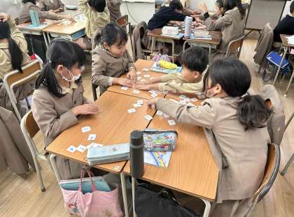 アルファベットカードを使って、クイズ形式で学習をしていました。