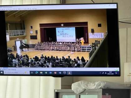 5時間目は少しリラックスして、先日の学習発表会で見ることができなかった学年の発表をテレビで鑑賞をしました。