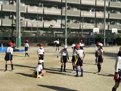 3クラス合同で、フラッグフットボールに取り組みました。