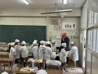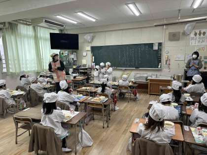 久しぶりの給食ですが、1年生もとてもスムーズに給食準備をしていました。