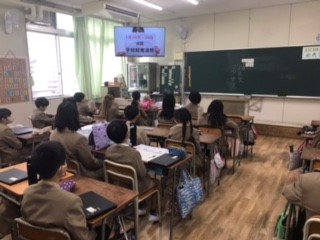 今週は、高見小学校では、学校給食週間としています。全国のたくさんの学校で取り組まれています。戦争中に中止されていた学校給食が再開されたことをきっかけに作られて行事です。校長先生から、「毎日食べている給食について考える機会にしましょう。」というお話がありました。子どもたちは、教室のテレビから流れる放送を集中して聞いていました。(栄養教諭)