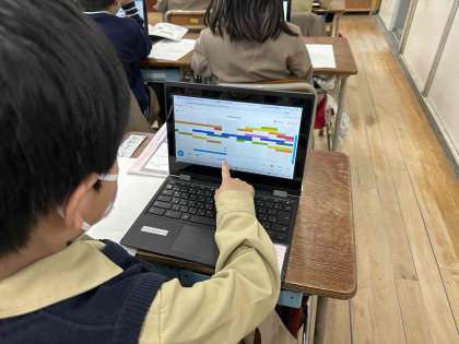 パソコンのアプリを使って、「きらきらぼし」の曲に、音を重ねたり、打楽器の音を入れたりして、音作りをしました。