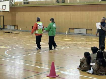 社会福祉協議会や福祉サポーターの方々にお手伝いいただき、アイマスク体験をしました。