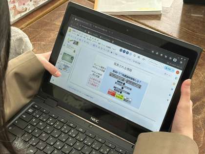 グループに分かれて、スライドを作成しています。
