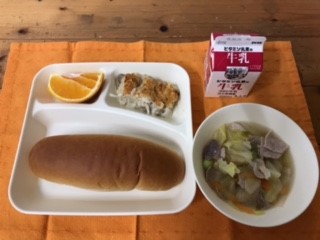 温州みかんの旬が終わりました。これから、大きい柑橘類が旬を迎えます。今日はデコポンが出ました。皮つきで、4分の1に切ったデコポンが給食に出ました。